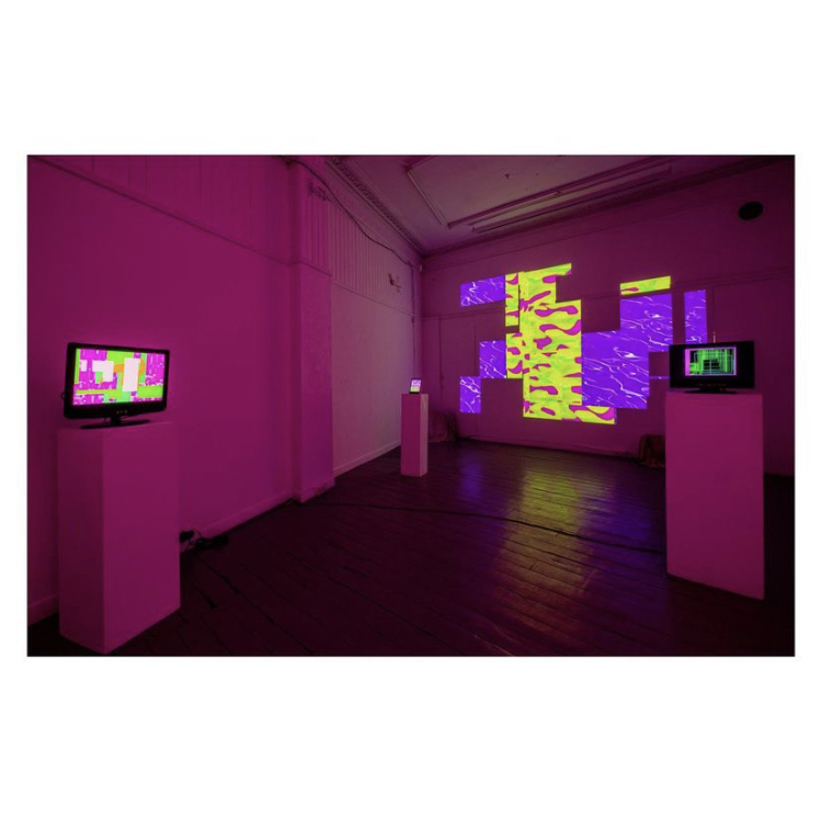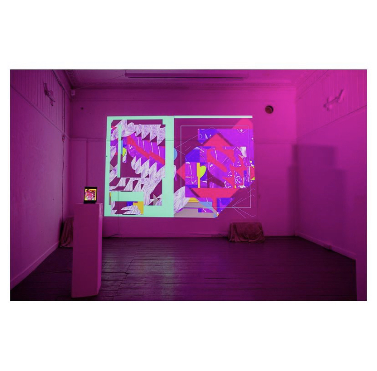 Hannah’s practice uses abstraction to playfully explore the translation of mark making across digital and physical mediums. Working with paint, printmaking and animation she creates colourful works that are inspired by a range of stimuli from retro games and weird fictional environments to pop music videos. Through the processes of drawing and digital collage, Hannah creates compositions that explore memory, nostalgia and imagined future spaces.